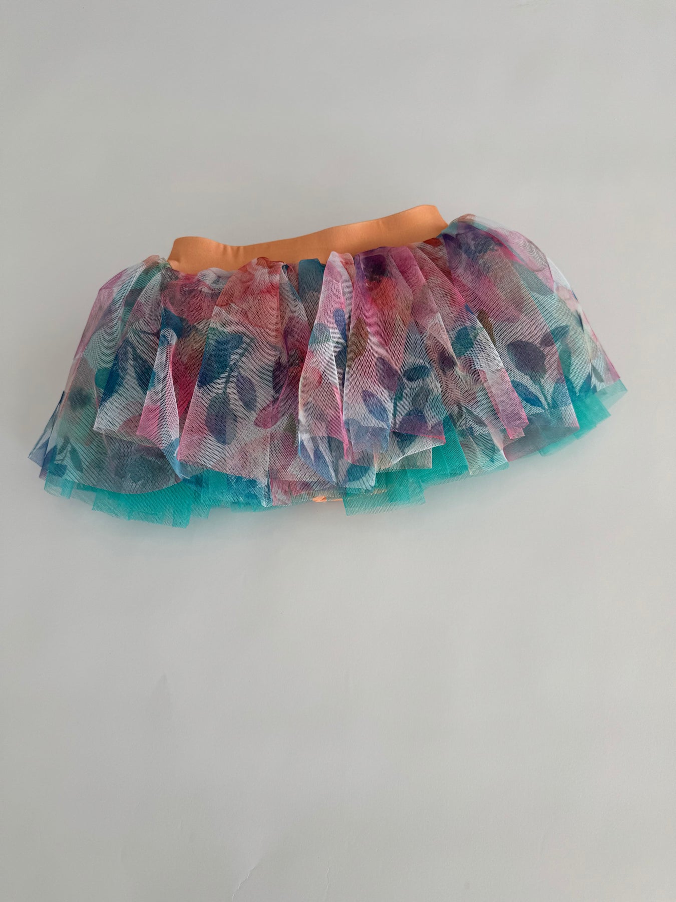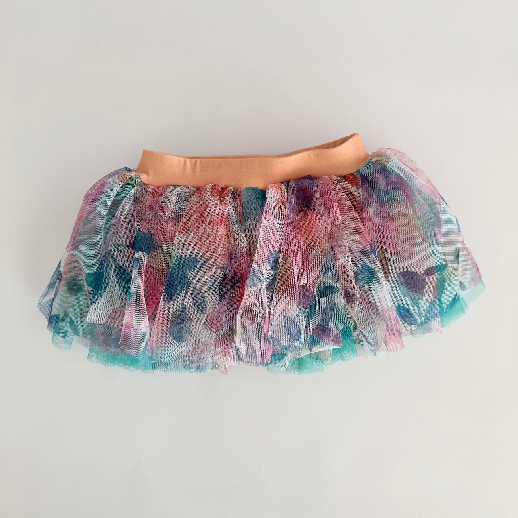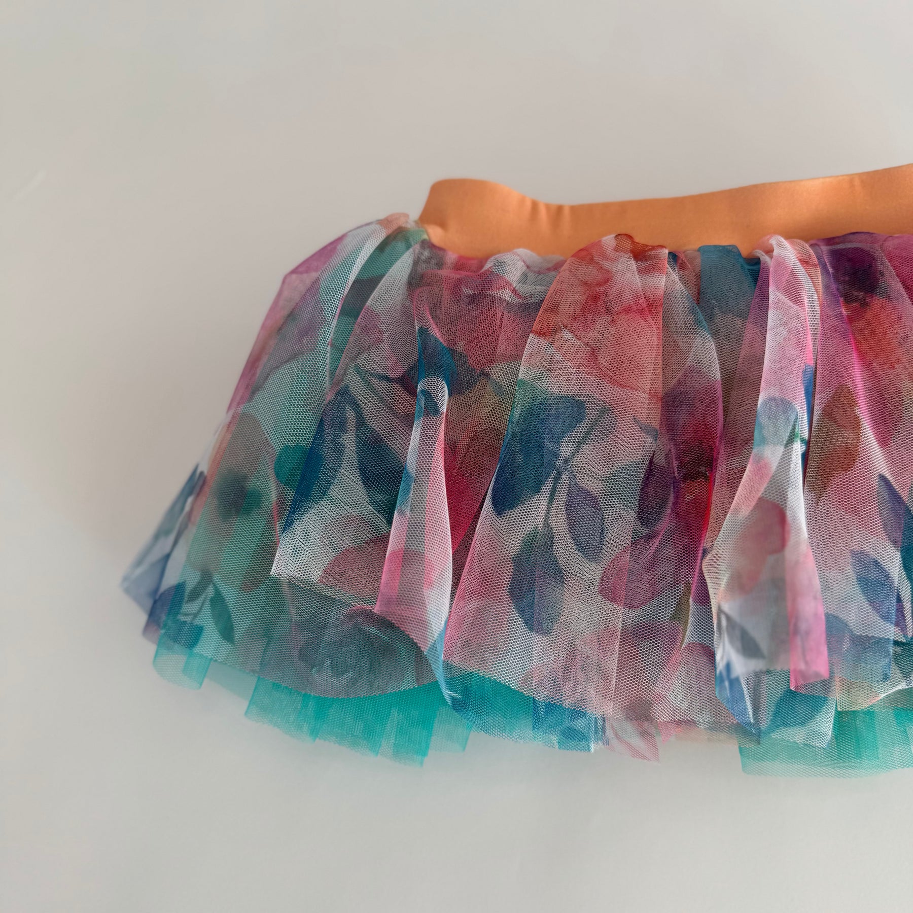 Our springtime floral tutu bloomer with nods of peach on the bodice and teal peeking through underneath make this a beautiful tutu to add to your kiddos tutu line up. Perfect for everyday wear and potty training stages!