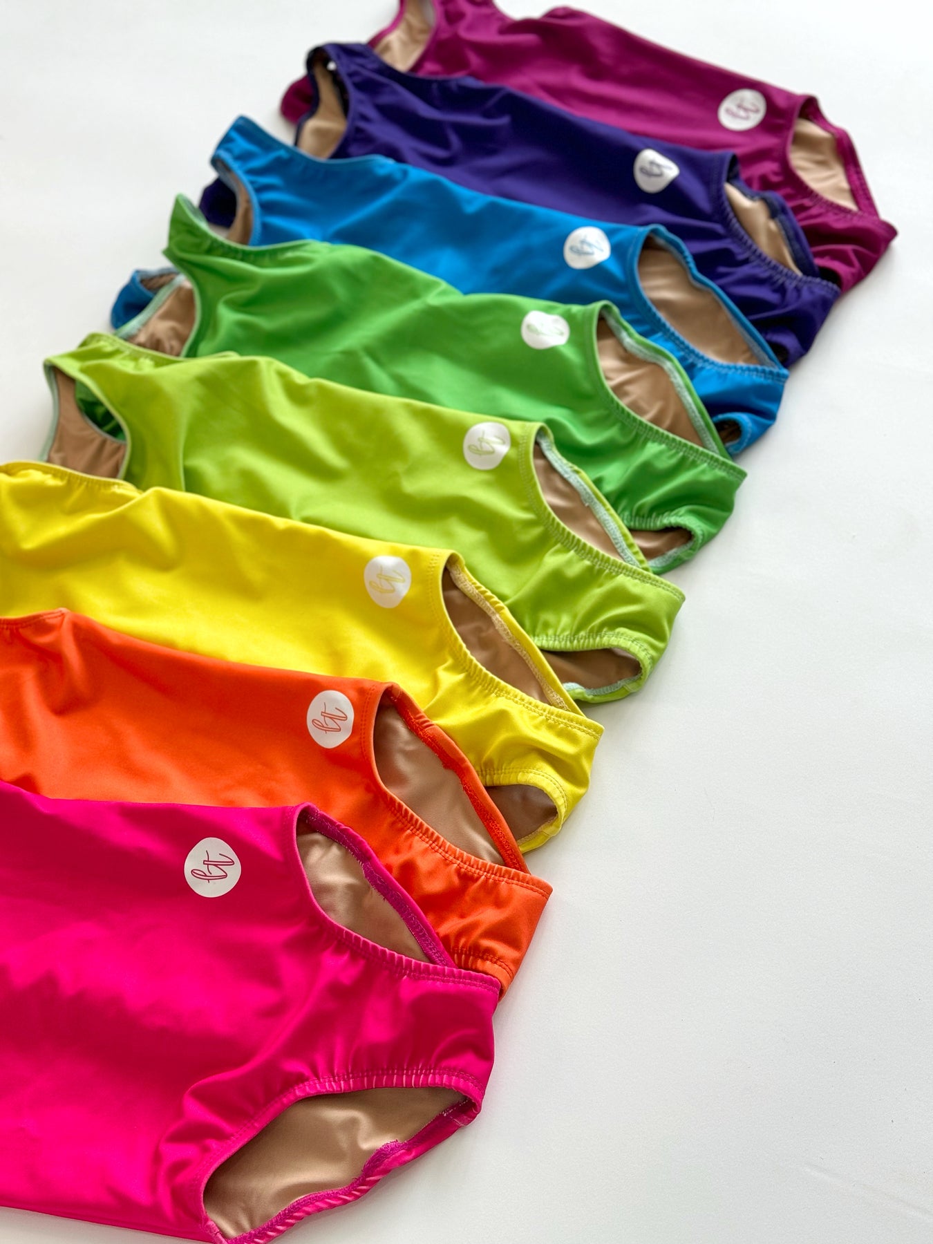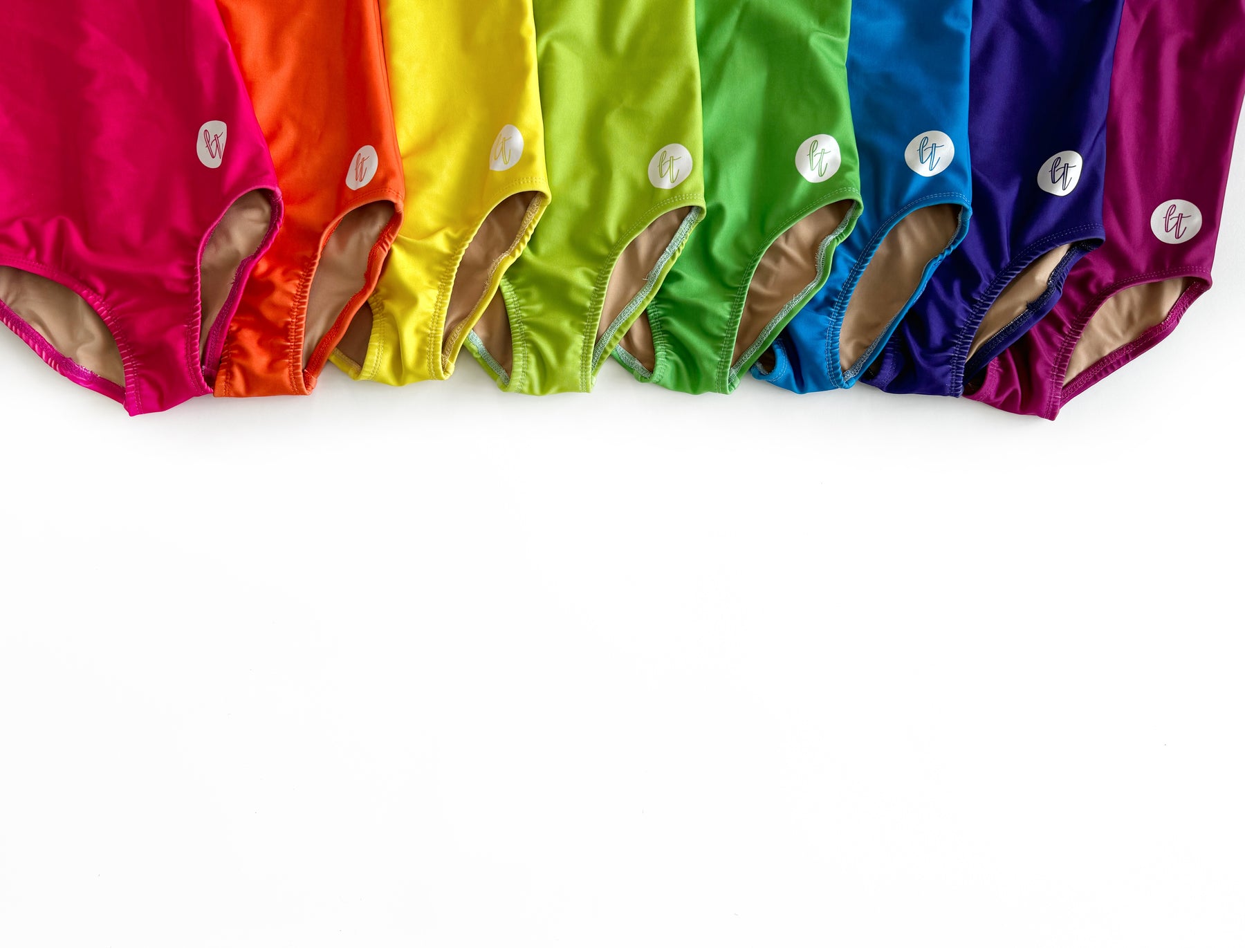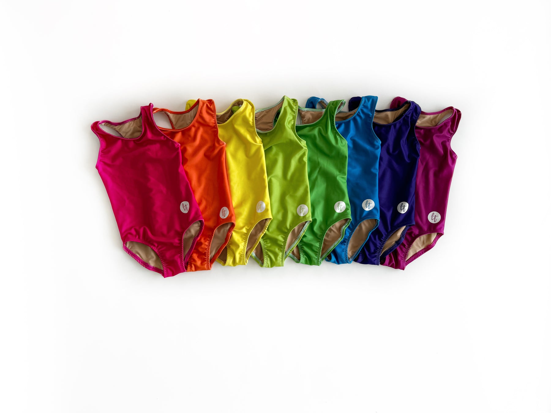 Our fully lined leotard base using swim fabric making this an ultra high quality, extra durable practice leo for tumbling and doubling as a summer swimmie.