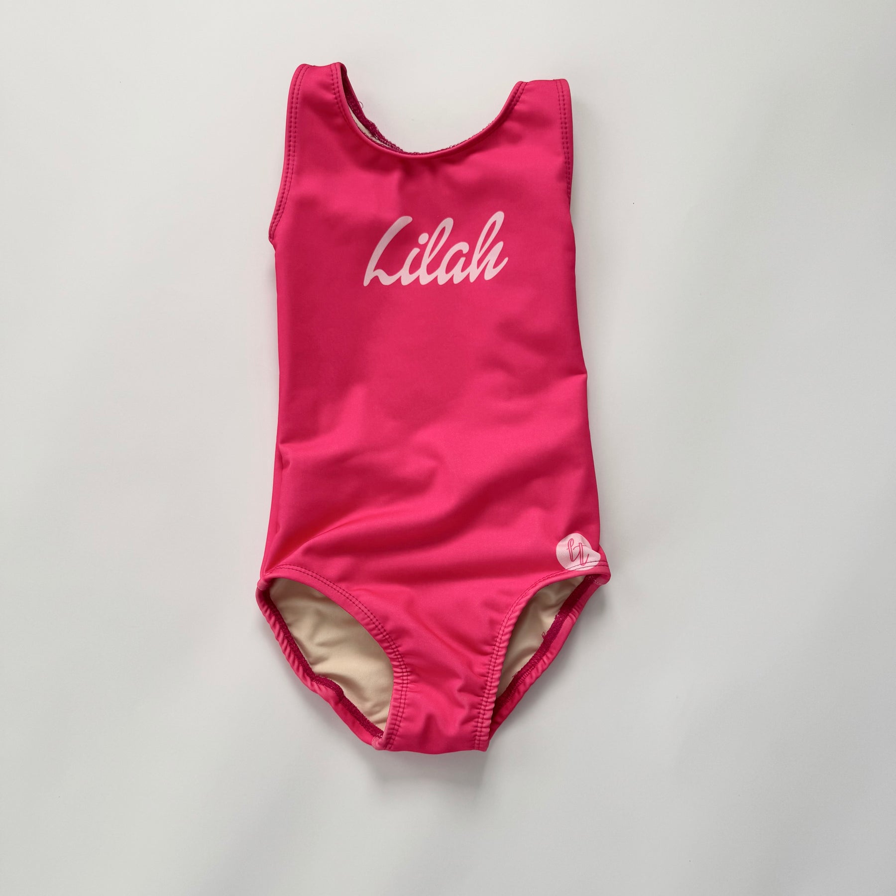 -Personalized bodice with ballerina pink writing and a pink swimsuit bodice. As with all digital portrayal and single item batch printing, please be aware that colors may appear different in person as you see on screen and may differ from previous orders. We do not guarantee exact matches.