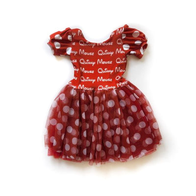 -Polka Dot Tutu and sleeves, personalized bodice in our magic font, perfect for your favorite day at the best place on earth. Comfort for all day adventures. Choose Red or Taffy! As with all digital portrayal and single item batch printing, please be aware that colors may appear different in person as you see on screen and may differ from previous orders. We do not guarantee exact matches.